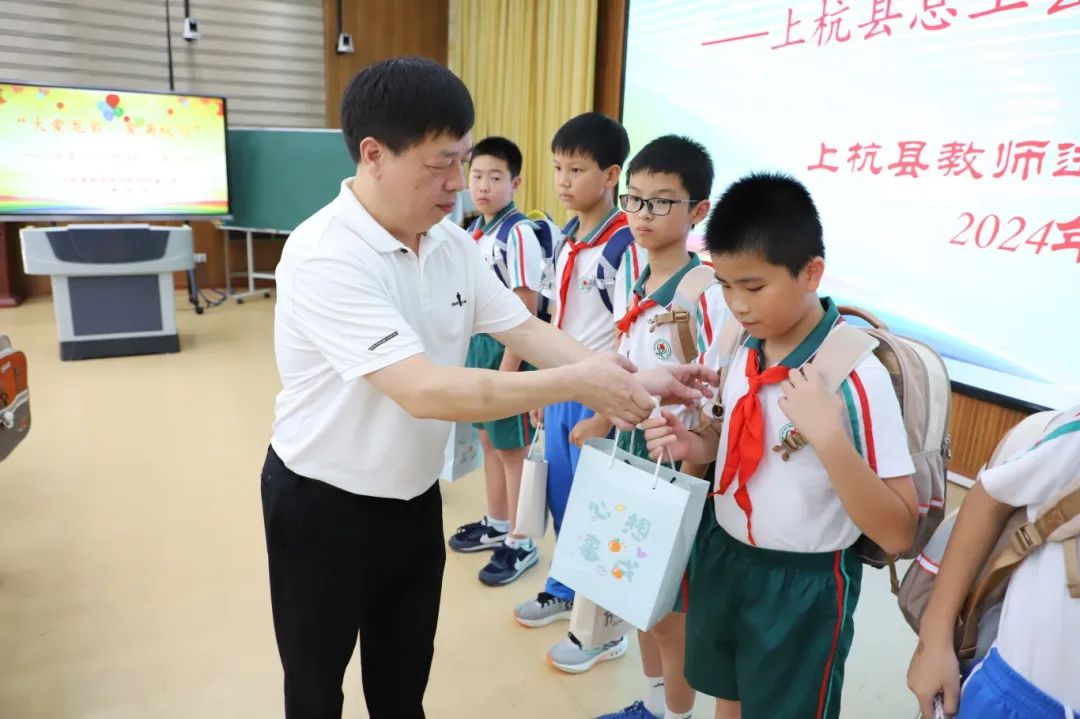 活动现场,龙岩市未成年人校外心理健康专家库成员、上杭二中正高级教师林盛以“阳光心态, 积极生活”为主题开展心理健康讲座,他告诉孩子们要有阳光心态,明确阳光心态是一种积极、宽容、感恩、乐观、自信的心智模式。具有阳光心态的人乐观开朗、自信坚强、善于交往、做事负责、关爱他人、懂得感恩。 接着林老师理论联系实际,深入浅出地从我们的心理特征、我们的心理困惑、我们心理调适的方法等三个方面引导孩子们如何才能具有阳光心态、积极生活,进而构筑幸福人生。 六一慰问暖童心 5月28日上午,上杭县总工会开展“六一”儿童节慰问活动,县总工会党组书记、副主席林荣焕一行先后前往实验小学、城东小学、第二实验小学、教师进修学校附属小学等8所学校,走访慰问200名困难职工家庭儿童、 新就业形态群体困难家庭儿童、困难农民工随迁子女、困难留守儿童、困境儿童代表。