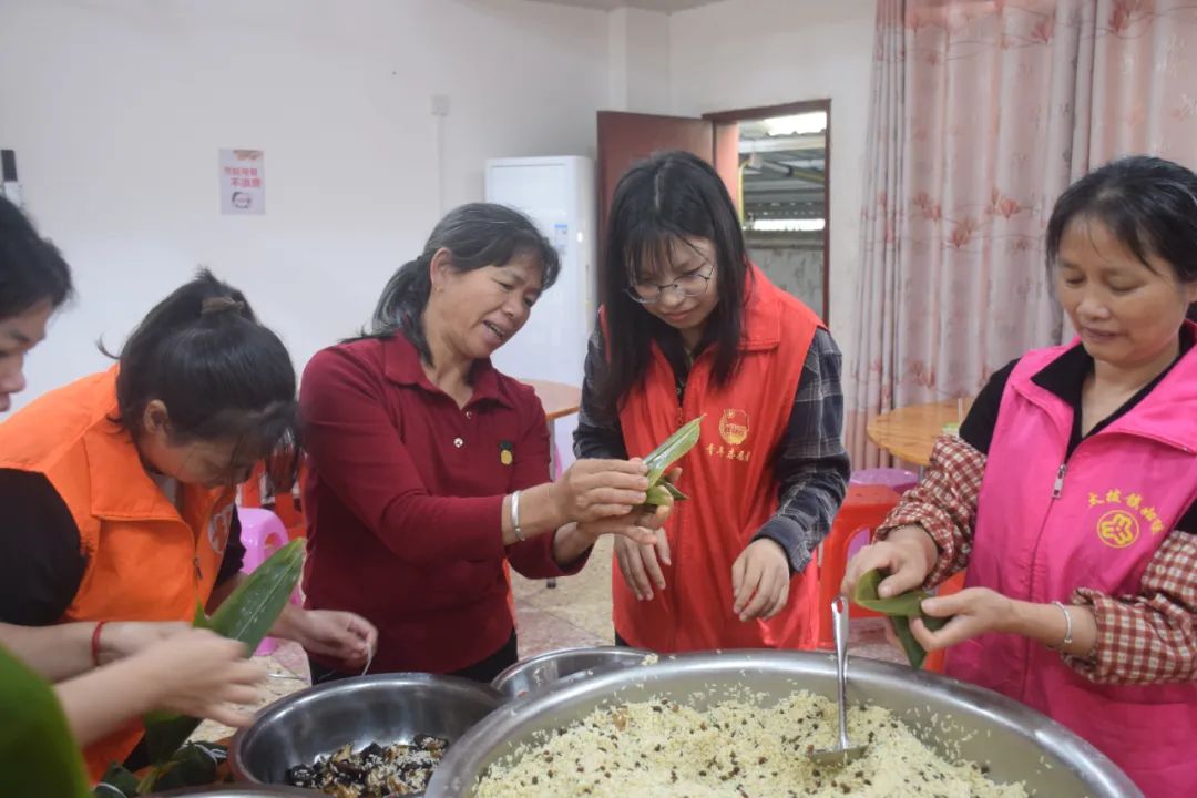 端午节在我国已经有两千多年的历史,是我们中华民族的传统节日。6月5日,太拔镇组织机关干部职工开展包粽子活动,活动开始前工作人员将提前浸泡好的糯米、粽叶等材料整齐摆放在桌上,大家围在桌前做好准备工作。 活动一开始,大家争先恐后地捋粽叶、做漏斗、填糯米、加馅料、包裹、捆绑......有的现学现包,当起了学生和老师。经过大家的努力一个个或大或小的粽子在大家手中诞生,现场充满欢声笑语。