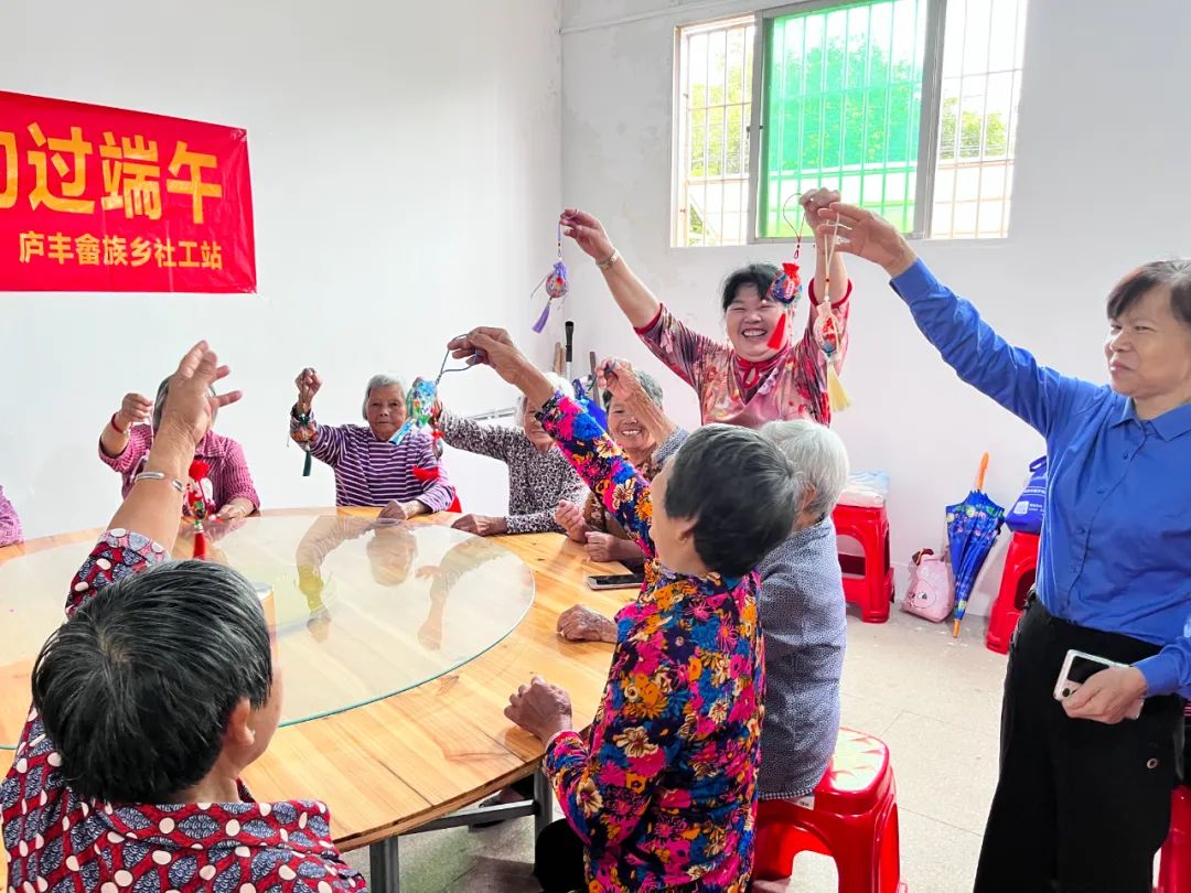 悠悠艾草香,情意绵绵长;龙粽裹五粮,同心祁安康。为弘扬优秀传统民俗文化,营造浓厚的节日氛围,在端午节来临之际,6月6日上午,庐丰畲族乡社工站联合乡妇联、文明办于丰康村幸福院举办“巧手做香囊 ‘香’约过端午”端午节主题活动。