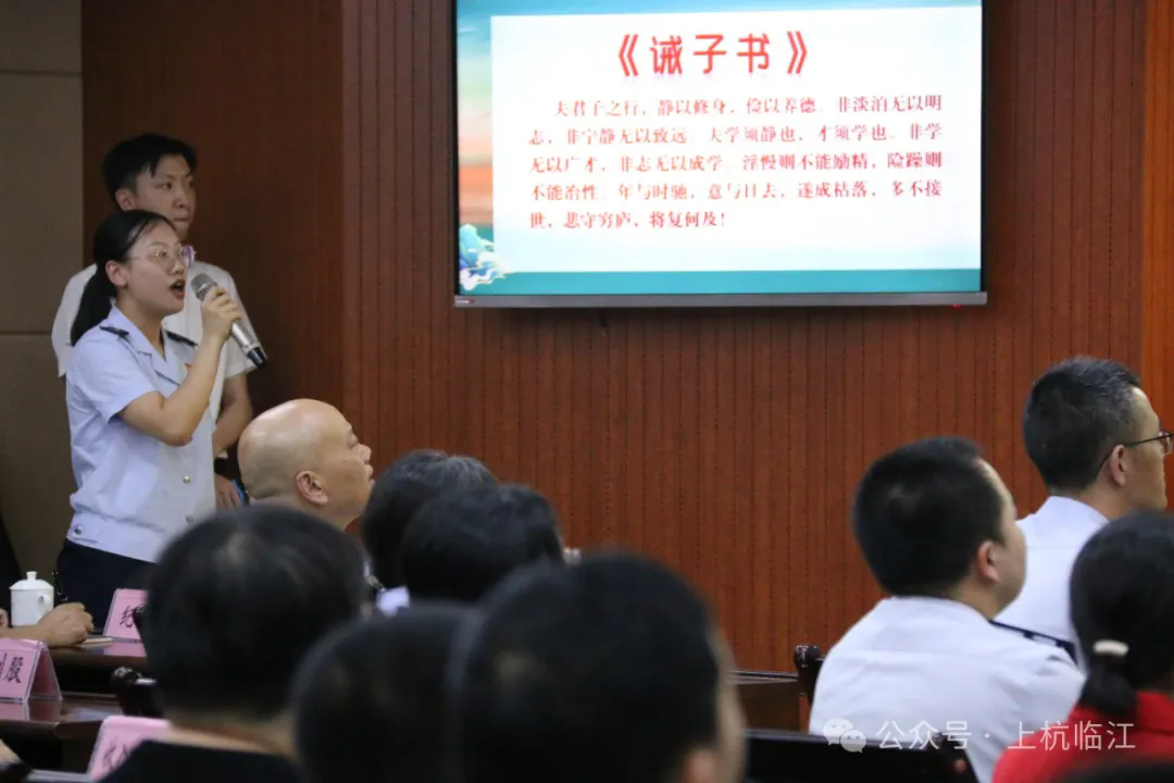 “夫君子之行,静以修身,俭以养德。非淡泊无以明志,非宁静无以致远……”全体人员共同诵读《诫子书》,全文虽仅八十六字,却蕴含着深刻的人生哲理和智慧,强调了修身养性的重要性,教导我们要立志高远,矢志不渝地追求成为有品质、有才华、有责任担当的人。 听故事,学习身边事迹