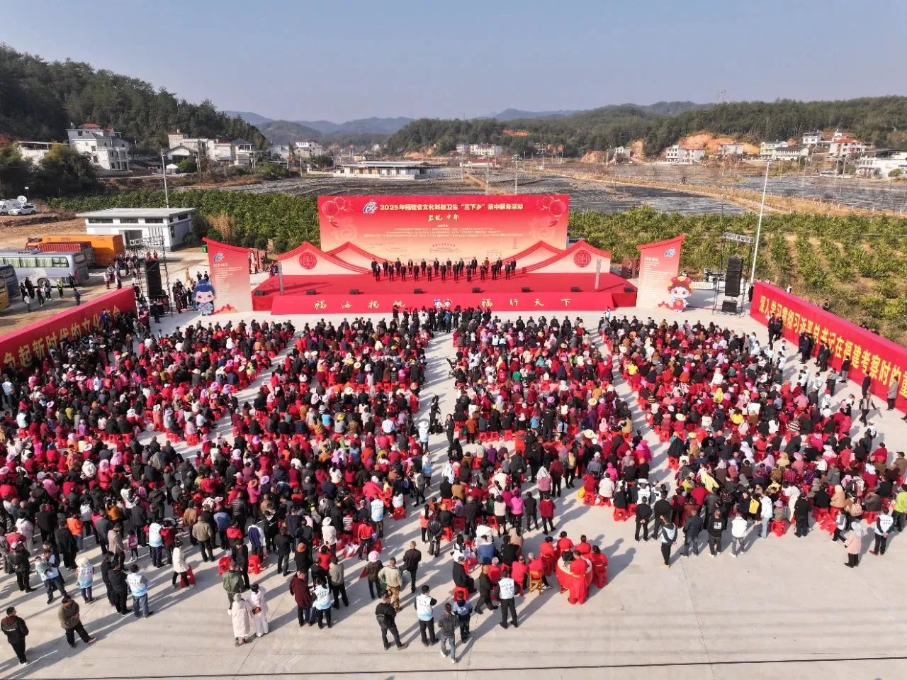 2025年1月23日,由省委宣传部、省科技厅、省文旅厅、省卫健委、省科协等16家单位主办,省委网信办等36家单位联办的2025年福建省文化科技卫生“三下乡”集中服务活动在龙岩市上杭县中都镇举行。省委常委、宣传部部长张彦出席启动仪式,龙岩市委书记余红胜致辞。 52家主联办单位共筹集资金款物1994.2万元,当天超过5000名当地百姓参加活动,现场人声鼎沸、节目热闹纷呈,群众好评如潮。此次省“三下乡”活动以学习宣传贯彻党的二十大和二十届二中、三中全会精神,贯彻习近平总书记在福建考察时的重要讲话精神,巩固拓展脱贫攻坚成果同乡村振兴有效衔接为主线,集中进行宣传宣讲、文艺演出、入户慰问、物资赠送、“福”文化宣介互动、全民国防宣传教育、“闽人智慧”宣传、海洋文化宣传、非遗文化展示、文化惠民、农技辅导、科技体验、科普宣传、健康体检、专家义诊和法律、家教、消防、气象、电力、金融、电信、电商等现场服务122项。组建理论政策宣讲、红色文化宣讲、林业技术培训、禁毒知识科普、健康知识讲座、医师现场带教等6支小分队开展宣讲、教学等服务,将党的精神和政策送到千家万户,将温暖服务送到群众家门口。启动仪式结束,省、市领导察看现场服务活动,随后带队慰问上杭县“6·16”特大暴雨受灾群众和农村困难群众家庭。