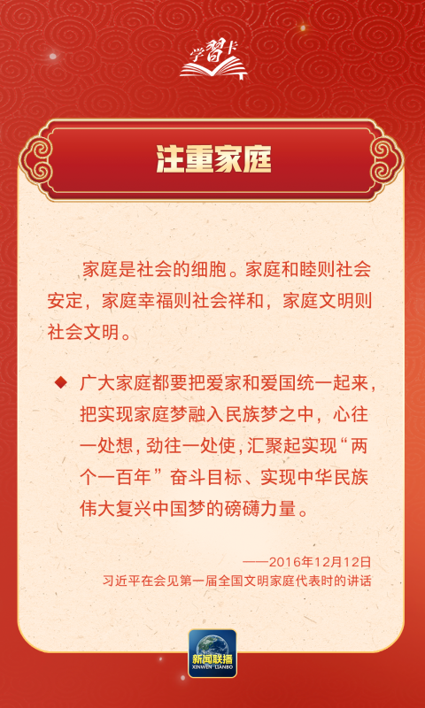 习近平:以千千万万家庭的好家风支撑起全社会的好风气
