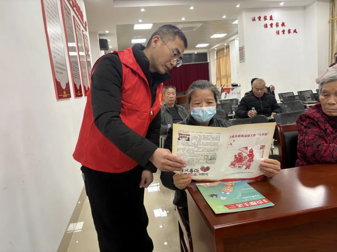 依托新时代文明实践所(站)开展“孝老爱亲传美德,厚养薄葬扬新风”等殡葬移风易俗道德教育宣讲活动5场次。结合“学雷锋·文明实践我行动”主题活动,通过组织观看公益宣传片、移风易俗讲座以及分享实际案例事迹等方式,深入浅出地普及殡葬奢侈浪费的危害性,广泛宣传安全、绿色、文明祭祀方式,引导居民理性对待殡葬、祭扫事宜,共同推动文明殡葬的新风从“入眼入耳”到“入脑入心”。 创新形式树新风,移风易俗破陋习