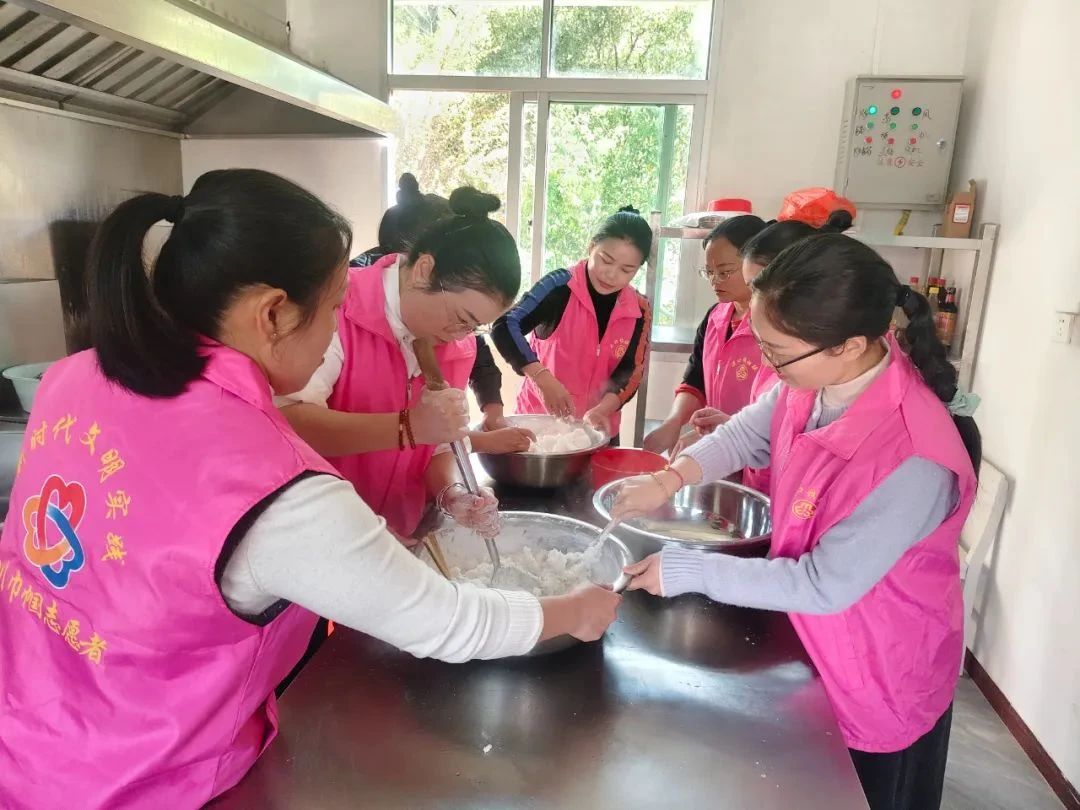 近日,溪口镇组织巾帼志愿者走进陈屋村长者食堂,为陈屋村长者们制作客家传统小吃“老鼠粄”,以指尖技艺唤醒民俗记忆,用一碗米香传递敬老深情。