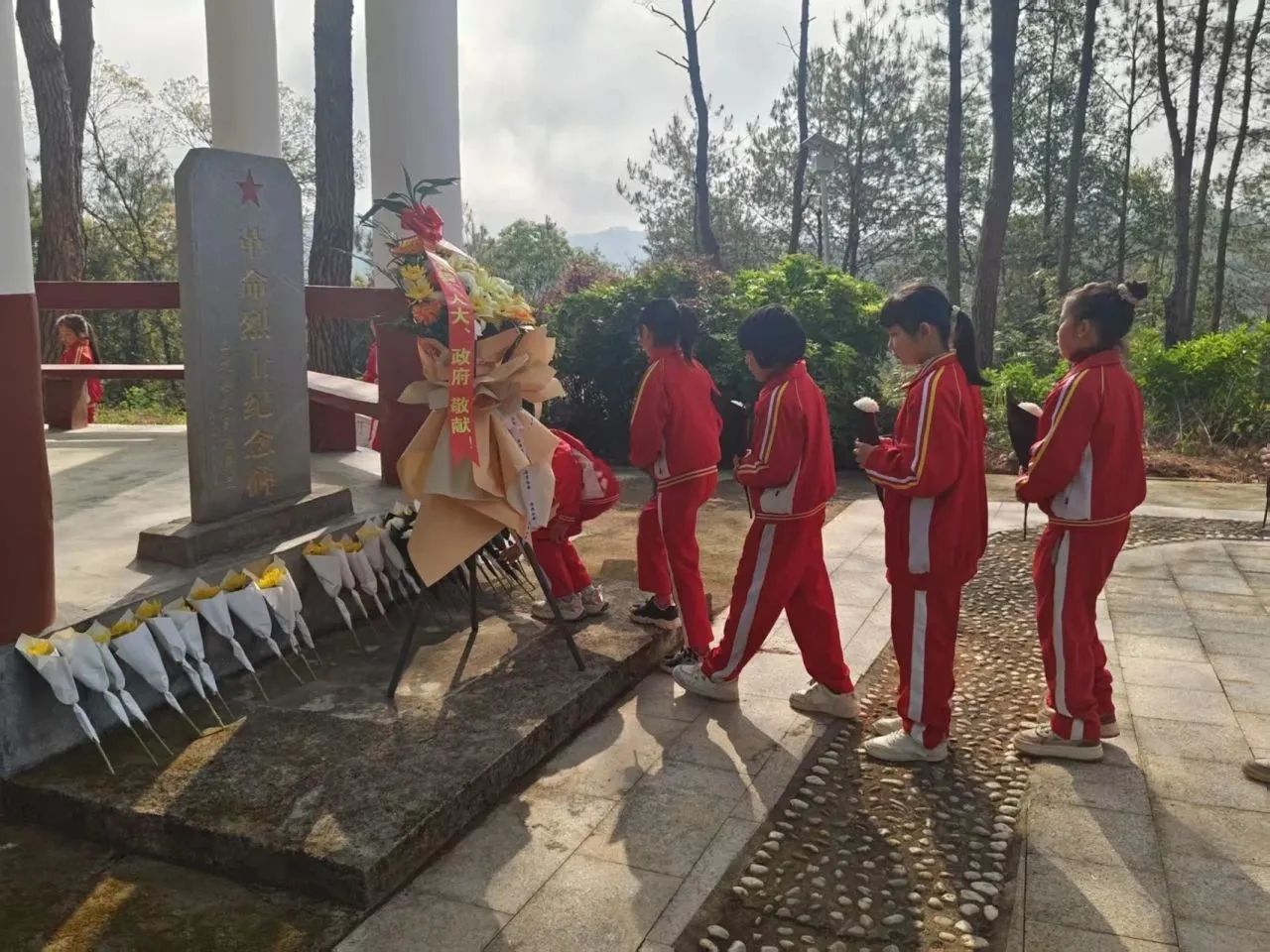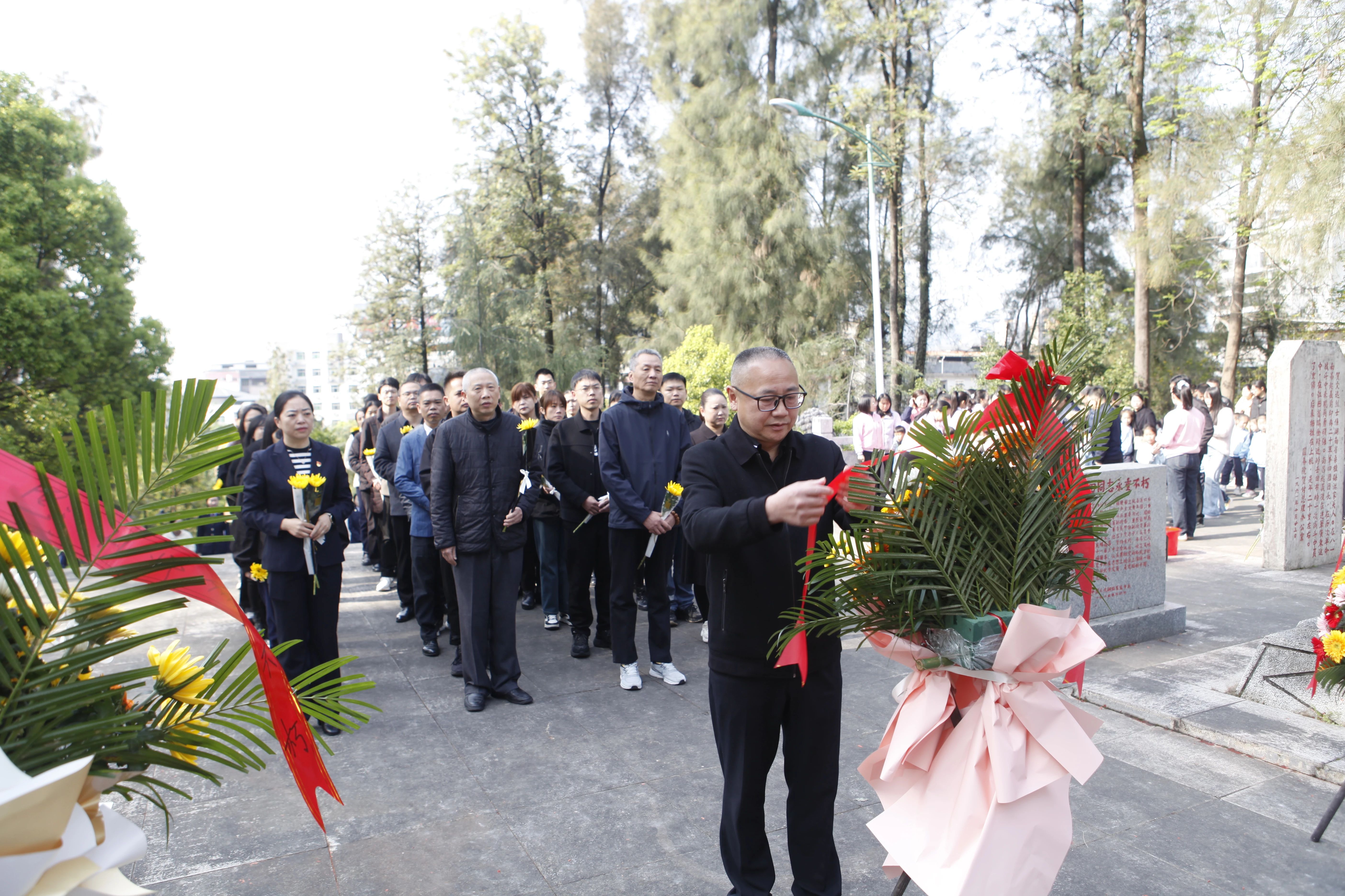 4月3日上午,上杭县水利局结合“我们的节日·清明”,组织干部职工前往上杭县革命烈士陵园开展“缅怀革命先烈 坚守初心使命”祭扫活动?;疃潦?,全体干部职工在烈士碑前列队肃立,向革命烈士敬献花篮。随后,大家向烈士三鞠躬,深切缅怀先烈功绩,向长眠于此的英雄们致以崇高敬意。最后,大家手持黄菊,依次缓步将鲜花轻放于烈士墓碑前,以朵朵黄菊寄托绵绵哀思。 庐丰畲族乡 4月2日,庐丰畲族乡组织全体机关干部职工、庐丰民族中学师生代表前往革命烈士纪念园开展“缅怀革命先烈 赓续红色血脉”祭扫活动。青山埋骨忠魂在,翠柏挺立勉英雄。在烈士纪念碑前,全体人员整齐列队,齐声高唱中华人民共和国国歌。随后,全场肃立,大家怀着无比崇敬的心情,鞠躬致敬,肃立默哀,沉痛悼念英雄先烈。默哀结束后,全体人员缓步绕行烈士纪念园一周,瞻仰人民英雄纪念碑,表达对英烈的深切缅怀和无尽哀思。祭扫仪式结束后,志愿者们自发对陵园环境进行打扫。他们认真清理着每一片落叶、每一处杂草,只为让烈士安息的地方更加整洁、庄严。 下都镇