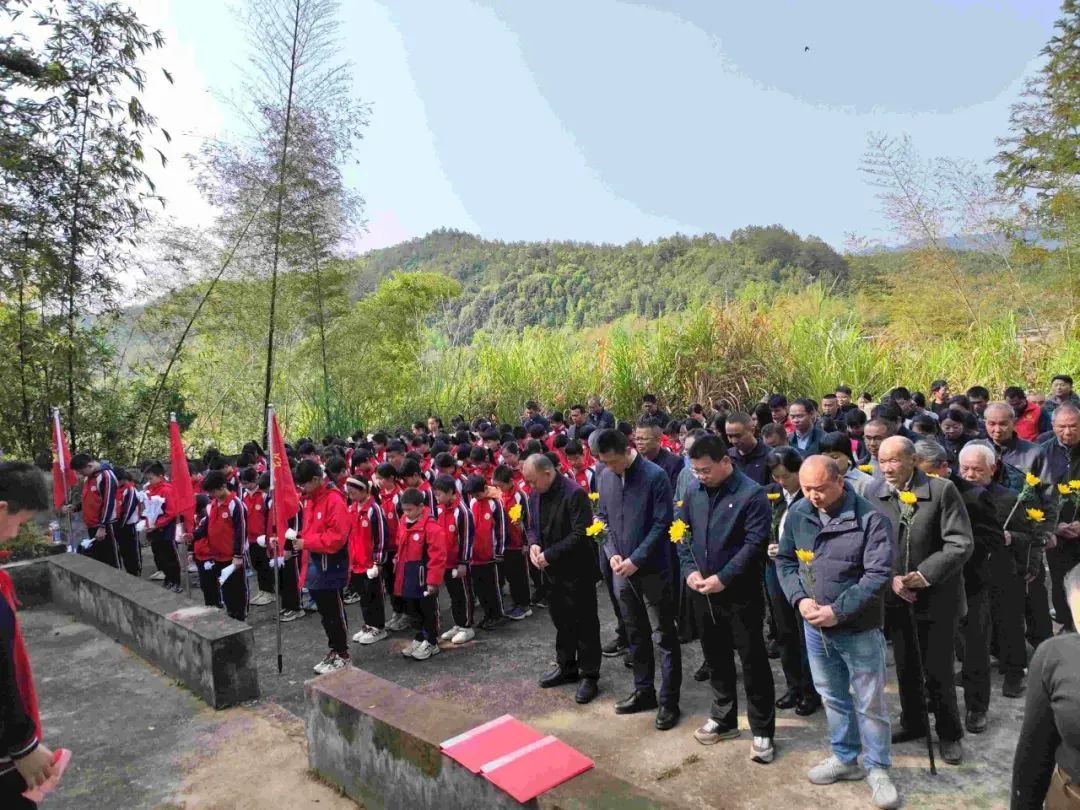 4月2日,珊瑚乡组织全体机关干部、各村退役军人服务站站长、珊瑚中心小学师生、烈士亲属代表、社区矫正对象等60余人,前往珊瑚革命烈士纪念碑前开展“百园千校清明祭英烈”主题活动,以庄严仪式寄托对革命先辈的深切追思?;疃谛圩车闹谢嗣窆埠凸韪枭欣蚰?,全体人员在烈士纪念碑前整齐列队,肃立默哀,并向烈士行三鞠躬、敬献鲜花、擦拭墓碑、清扫陵园,寄托无尽哀思与崇高敬意。 古田镇 4月2日上午,古田镇在革命基点村大源村开展“铸魂2025·清明祭英烈”主题活动。镇村党员干部、古田中学师生代表、部分退役军人及烈士家属代表参加活动。在革命烈士墓碑前,全体干部群众整齐列队、肃立默哀,向革命先烈鞠躬致敬。随后,众人依次瞻仰烈士墓碑并敬献鲜花,以无声的哀思告慰英灵。仪式结束后,一行人前往参观大源村革命烈士斗争史陈列室,烈士亲属、古田退役军人志愿服务队宣讲员为大家讲述了《大源村革命简史》和《大源村烈士生平简要事迹》,重温“红色三兄弟”的感人故事,带领大家共同追忆那段峥嵘岁月,感悟大源村厚重的红色历史底蕴。 湖洋镇