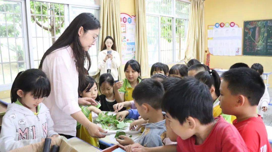 此次支教,央美与央音的老师们充分发挥专业优势,精心设计课程,为孩子们打开了一扇扇通往艺术世界的大门。在美术课堂上,央美老师针对不同年龄段学生的特点,为1至3年级学生开设了植物敲拓染课程??翁蒙?,孩子们拿起小锤子,轻轻敲击植物,将叶片、花瓣的色彩与形态拓印在布面或纸张上,创造出一幅幅独一无二的自然艺术作品;4至6年级的动植物写生课程,则引导孩子们用敏锐的目光观察身边的自然,用画笔勾勒出花草的柔美、动物的灵动,在一笔一画间提升艺术感知力与表现力。 央美老师围绕植物为主题,开展植物敲拓印与植物写生课程。通过趣味十足的实践活动,让孩子们在动手操作中感受艺术创作的乐趣,学会用艺术的语言描绘自然之美。 音乐课堂