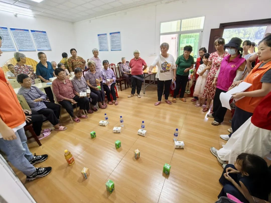 活动当天,志愿者们一早便带着食材与工具齐聚幸福院。厨房内,大家分工协作,调馅、包饺子井然有序。不一会儿,一个个饱满圆润的饺子便整齐排列在大盆中。与此同时,老人们围坐在活动室,唠着家常,分享生活趣事,欢声笑语此起彼伏。 为了增添活动的趣味性,志愿者们还精心筹备了套圈游戏,并准备了食用油、肥皂、毛巾、纸巾等生活用品作为奖品。随着游戏开始,老人们纷纷踊跃参与,他们手持套圈,眼神专注,小心翼翼地将套圈掷向目标。现场不时响起阵阵欢呼,套中奖品的老人满脸喜悦,兴奋地向同伴展示“战利品”,有的老人虽多次尝试未能如愿,在志愿者们热情的加油声中,也乐在其中,享受游戏带来的快乐。