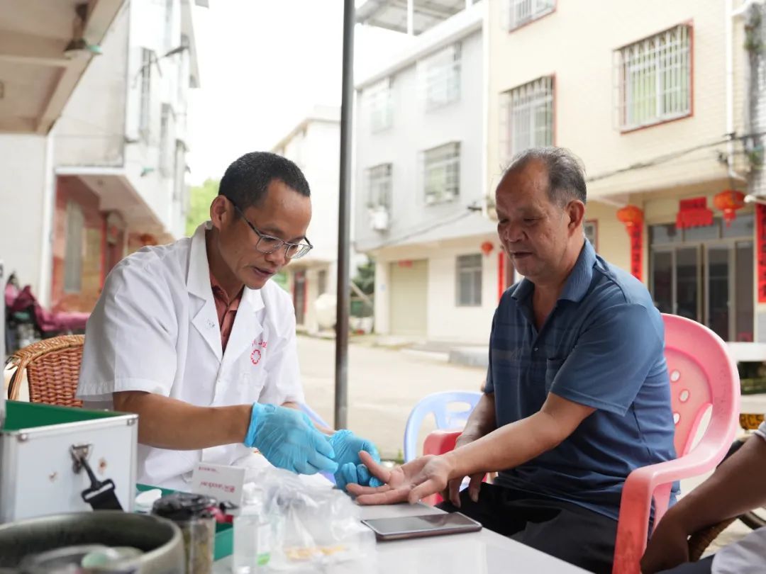 太拔镇大地村村医在村里巡诊 针对常住人口稀少、居住更为分散的村落,上杭县创新推出“网格化”服务模式。太拔镇大地村卫生室便是这一模式的缩影。它虽名为“大地村卫生室”,实际却联动服务着周边6个行政村。两名村医间错开时间,每人每周固定两天,带着装满药品和诊疗设备的药箱,穿梭于村庄之间,为村民们提供诊疗、随访和健康管理服务。