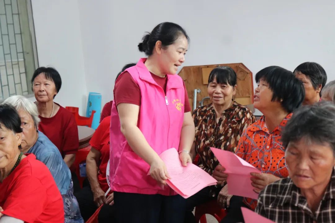 为弘扬时代新风尚,引导辖区群众树立正确的价值观念,倡导讲文明、树新风的良好社会风尚,近日,上杭县庐丰畲族乡组织志愿者在丰康村幸福院开展移风易俗主题宣传活动。 文艺活动润心田 活动现场,老人们精心排练了歌舞、快板等节目,包括歌曲《东方红》、舞蹈《家和万事兴》《好运连连》、快板《移风易俗我来讲》等。精彩的文艺节目让观众们连连叫好,大家热情洋溢,乐在其中。这些文艺节目充分融入移风易俗理念,让文明理念深入人心,为乡村精神文明建设注入活力。