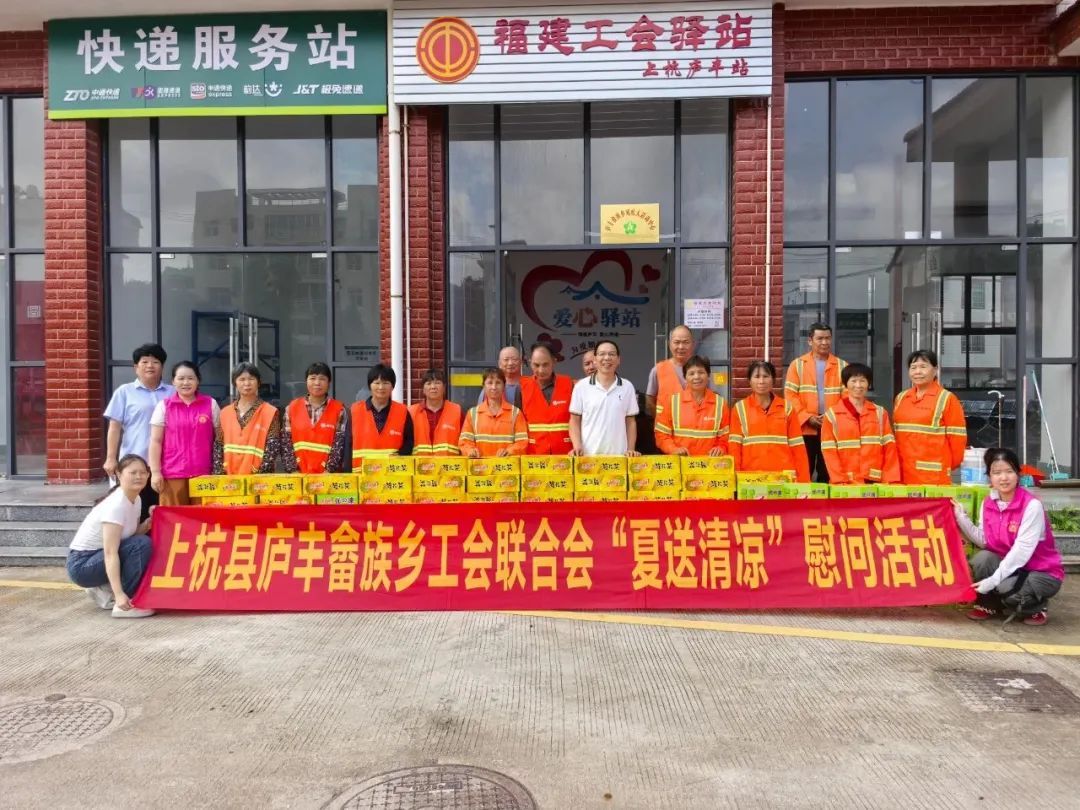 连日来,气温持续攀升,给坚守在一线岗位的职工们带来了严峻“烤”验。为切实做好防暑降温工作,保障职工的身体健康,上杭县多个乡镇积极行动开展慰问活动,为在烈日下辛勤劳作的职工们送去丝丝凉意和深切关怀。 庐丰畲族乡 7月30日上午,庐丰畲族乡工会联合会、乡妇联组织开展“夏日送清凉”活动,为奋战在高温下的劳动者们送去夏日里的清凉关怀。