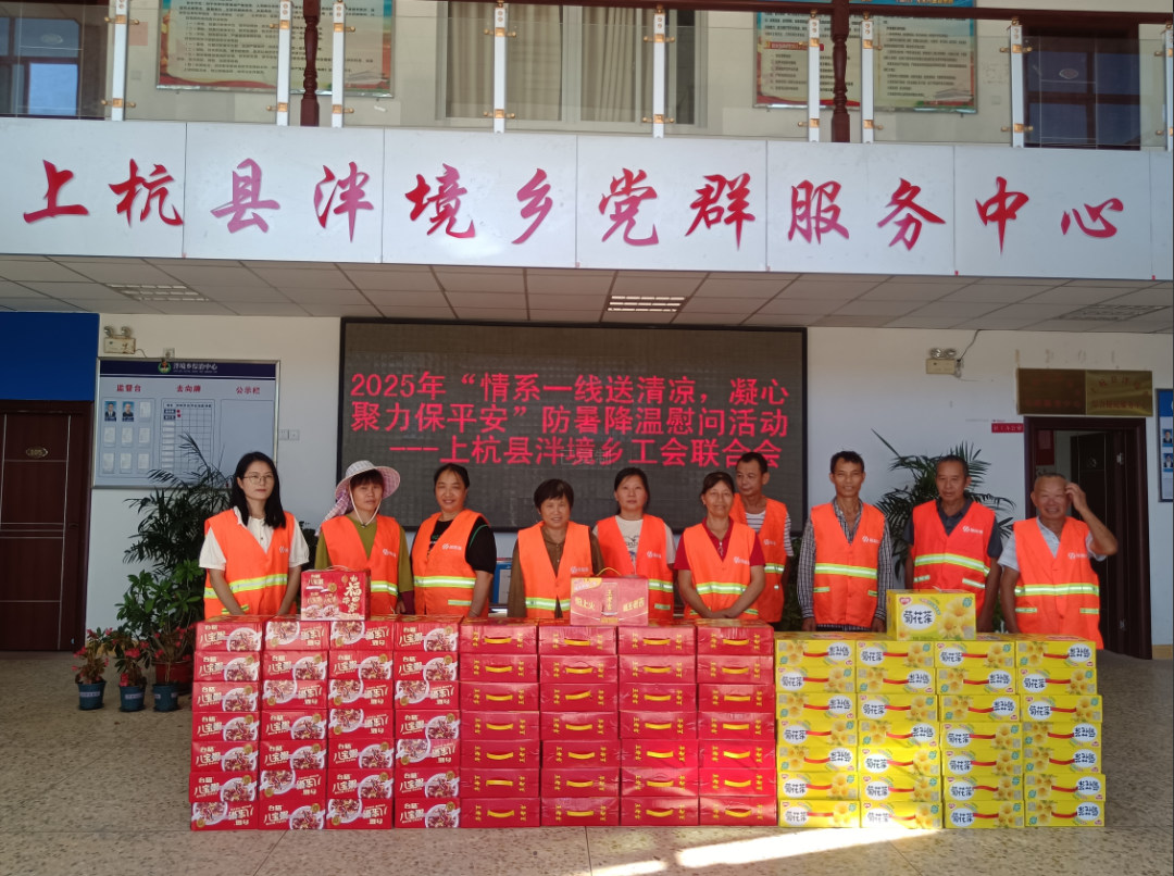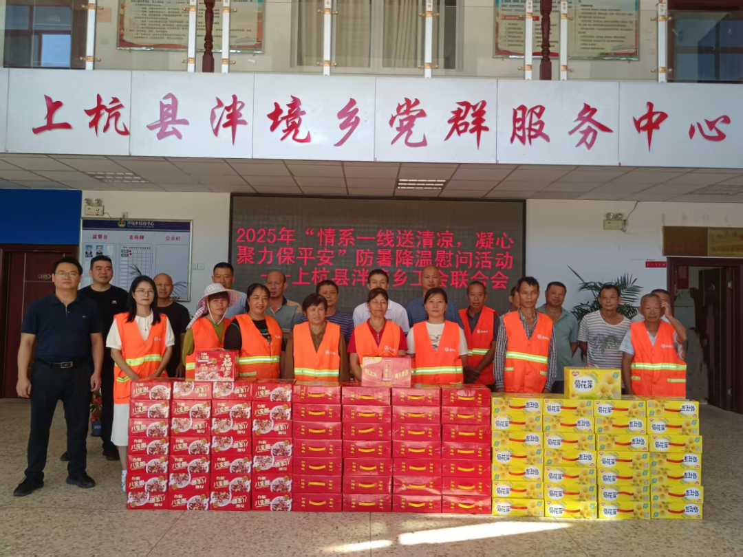 同时,乡工会联合会也对派出所一线执勤警察开展了慰问,为他们送上防暑物资,感谢他们为东南片区平安稳定作出的贡献。 下一步,庐丰畲族乡将继续聚焦职工需求,切实维护职工健康权益,用实际行动提升职工获得感、归属感和幸福感。 泮境乡 近日,泮境乡工会联合会积极行动,开展了“情系一线送清凉,凝心聚力保平安”慰问活动。