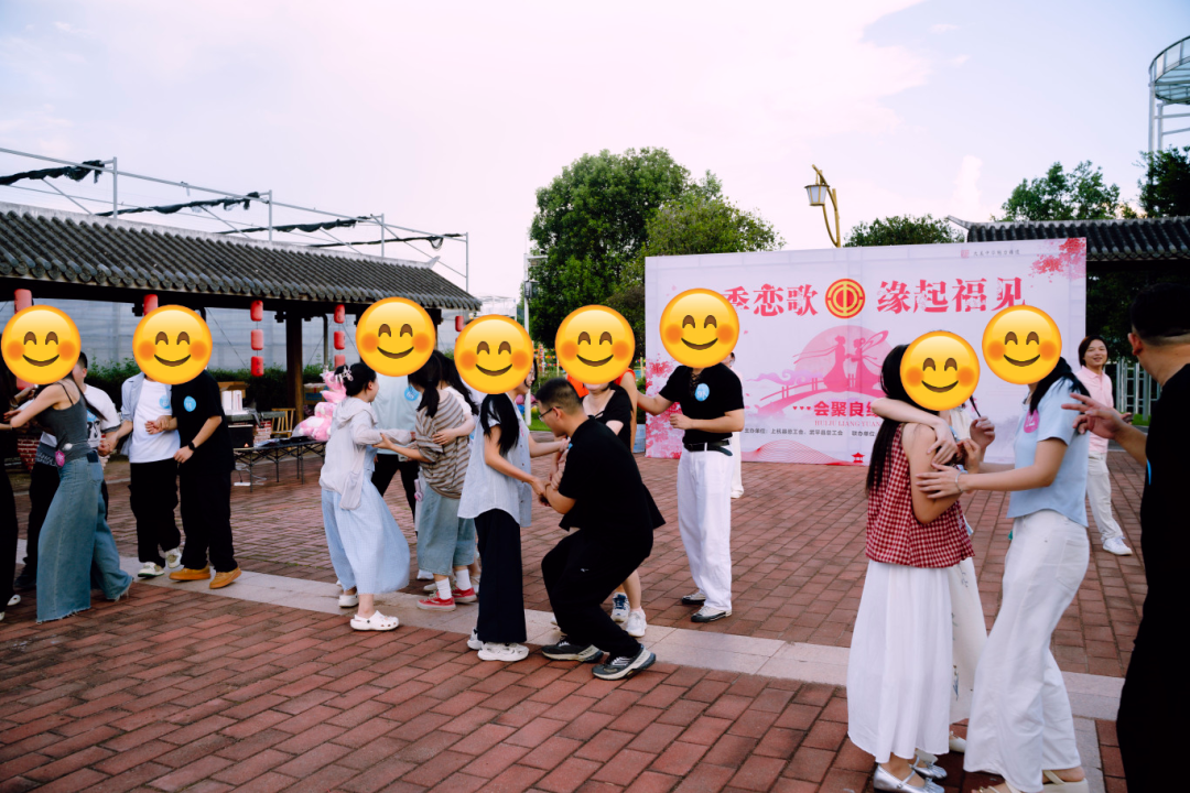 在“纸杯传情”游戏环节,男女青年默契配合,用筷子传递纸杯,既考验团队协作,又增添了不少趣味性。 缘来是你·抽卡缘分加码