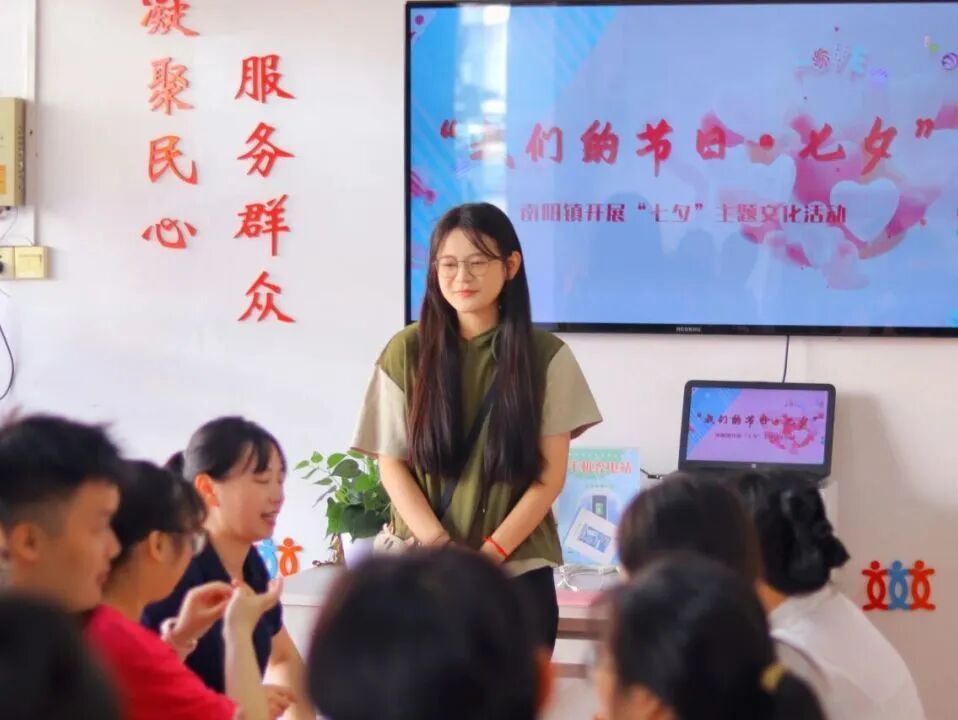 讲座聚焦亲子沟通与青春期性教育两大痛点。专家详解沟通技巧,强调倾听、理解与尊重是亲子连心的钥匙,让家长学会平等对话;以科学温和的方式科普青春期身心变化,指导家长引导孩子树立健康观念,解开“谈性色变”的困惑。 此次在七夕举办的家庭教育知识讲座,不仅传承了节日的美好寓意,更赋予了它新的内涵——用爱与知识滋养家庭,用沟通与理解守护孩子成长。下一步,白砂镇将持续发力,开展形式多样的活动,以传统节日之韵,育和谐家庭之花。 南阳镇 8月29日,南阳镇组织宣传、文明、妇联、团委、新时代文明实践所等部门联合开展“我们的节日·七夕”主题文化活动,将传统七夕文化与当前婚俗改革巧妙结合,带领青年干部完成一场从文化感知、价值共鸣到实践认同的深度体验。