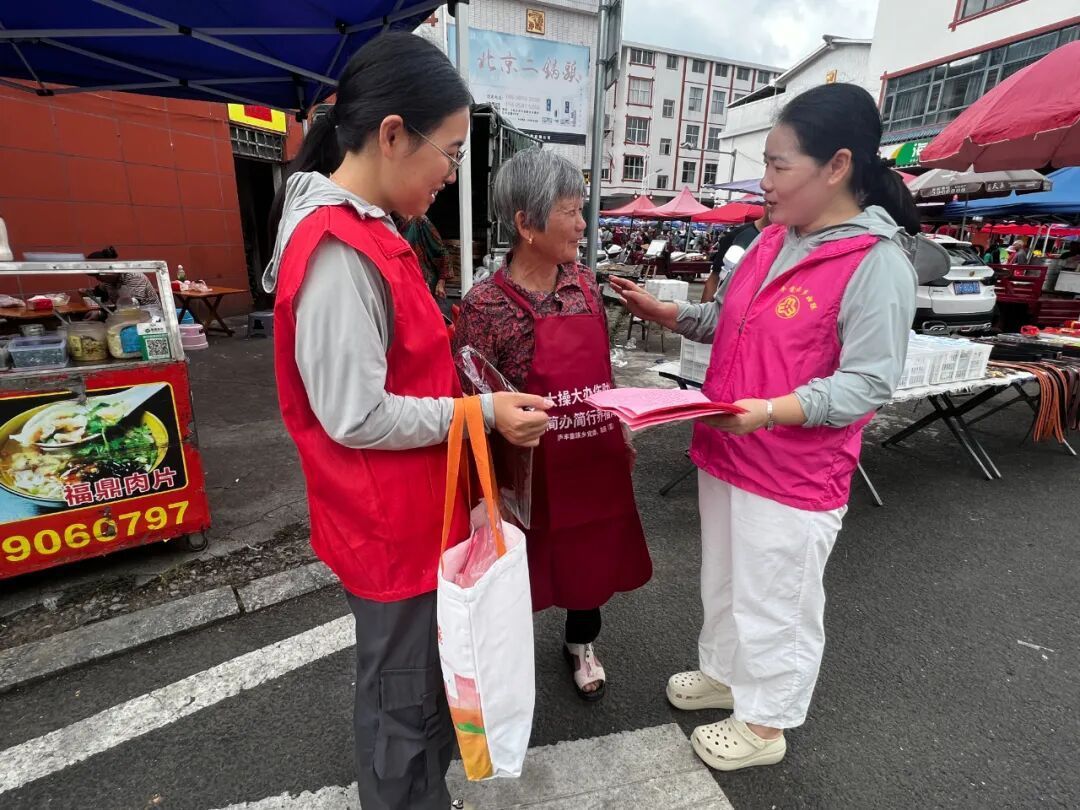 活动期间,志愿者主动下沉一线,一方面深入沿街商铺、农贸市场等人流密集场所,发放《移风易俗倡议书》,确保宣传材料精准触达;另一方面,结合群众日常生产生活实际,用通俗易懂的方言和鲜活案例,耐心细致讲解“厚养薄葬”“抵制高价彩礼”“婚事新办”“丧事简办”等文明理念,重点阐释勤俭节约对家庭幸福、社会和谐的重要意义,引导群众主动转变思想观念,自觉抵制大操大办、攀比浪费等陈规陋习,争做文明新风的践行者、传播者和引领者。