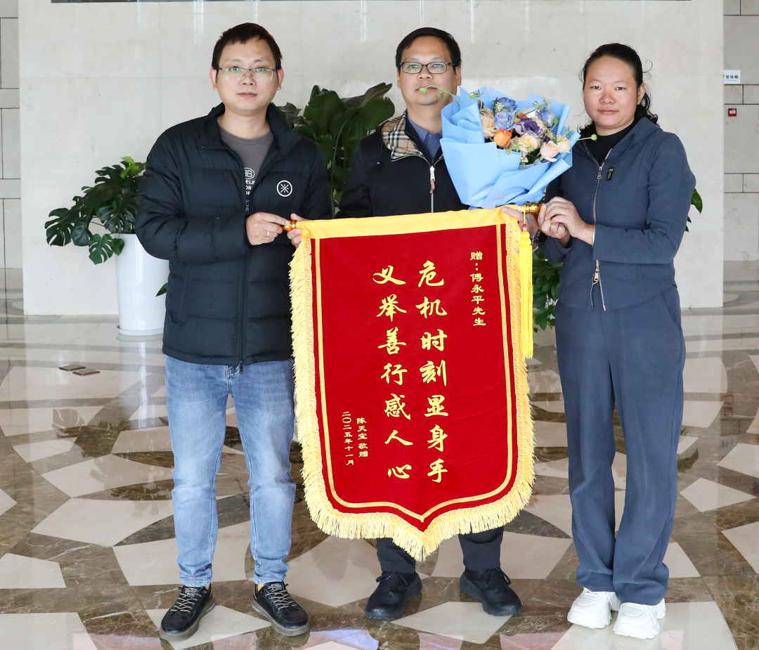 “您的英勇行为,不仅挽救了我儿子的生命,更挽救了我的整个家庭?!?1月12日,在上杭县紫金矿业总部,被救孩子的父亲紧紧握住总部车队员工傅永平的手,他专程送来感谢信和锦旗,感谢傅永平在危急关头挺身而出,救起他溺水的儿子。