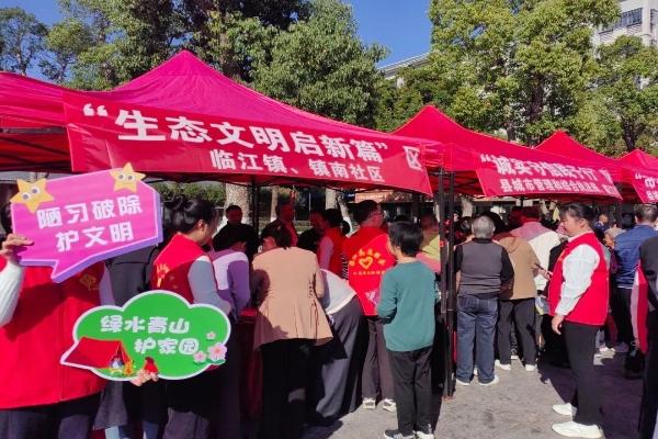 活动现场,临江镇党委书记张九功为第32届城区精神文明共建活动承办单位授旗,志愿者宣读《创城,让生活更美好》倡议书。