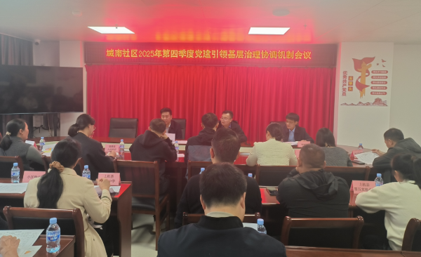 为推进文明城市创建工作,凝聚辖区共建合力,近日,临城镇城南社区召开2025年第四季度党建引领基层治理协调机制会议。县人大常委会办公室主任刘昌发,城南社区党委全体工作人员,共建单位、小区党支部、小区物业代表参加会议。